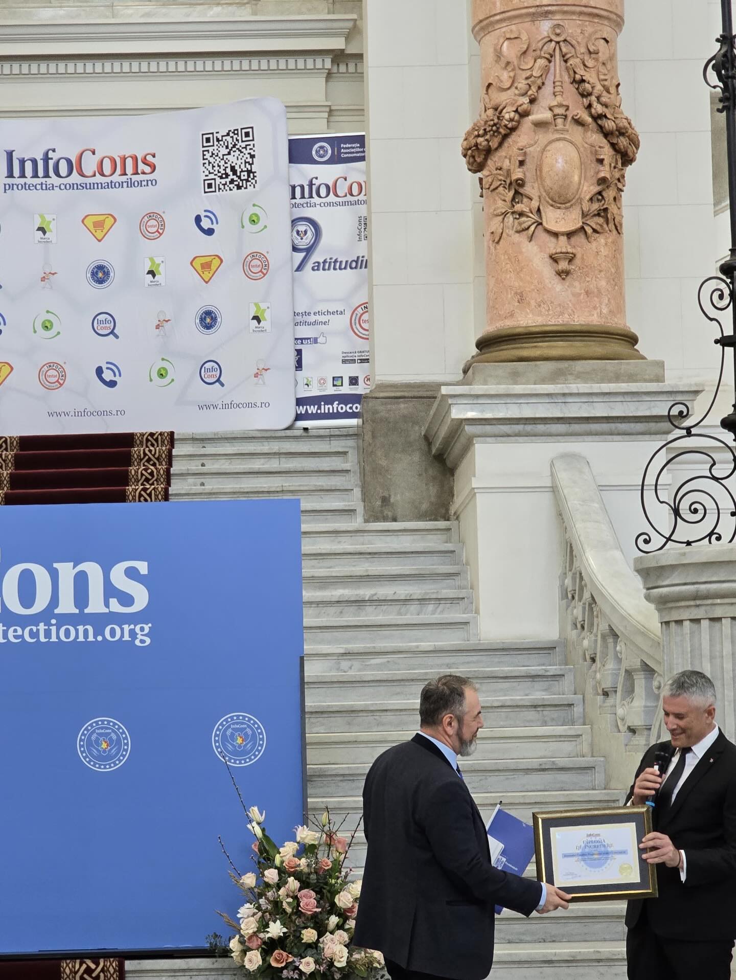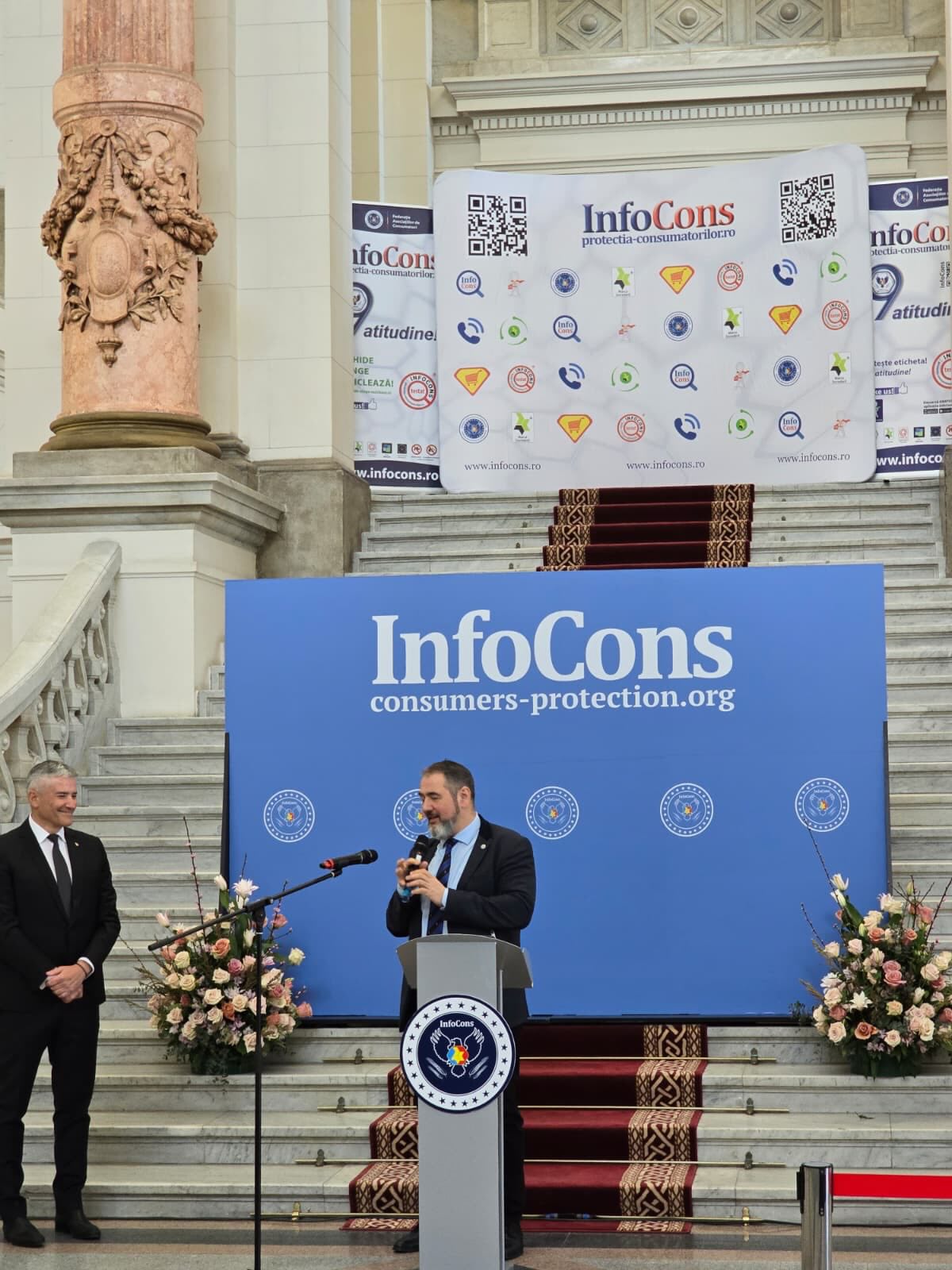 Diploma este acordată pentru implicarea, în calitate de Partener de Încredere, în cadrul acțiunilor derulate de InfoCons de-a lungul celor 23 de ani de activitate. Cu această ocazie, domnul Consilier Prezidențial Sorin Costreie a adresat câteva cuvinte participanților la eveniment.