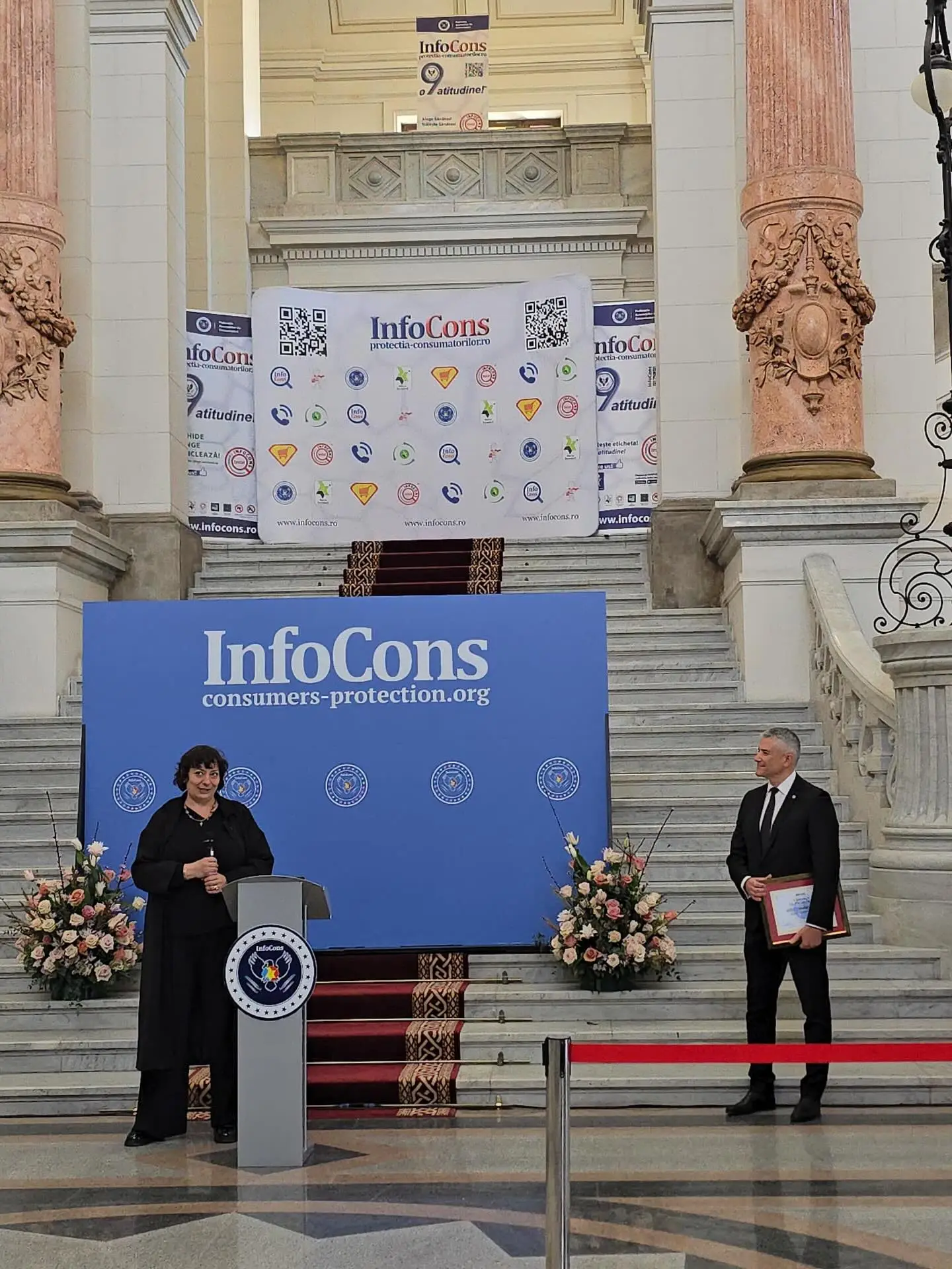 Decernarea Diplomei de Încredere acordată doamnei Irina Florescu , Președinte VISARTA, în cadrul evenimentului dedicat Zilei Mondiale a Drepturilor Consumatorilor și Zilei Mondiale a Proprietății Intelectuale, organizat de InfoCons în data de 13 martie 2026, la Palatul de Justiție București.