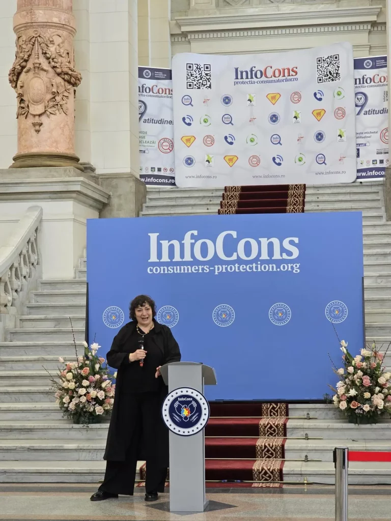 Diploma este acordată pentru implicarea, în calitate de Partener de Încredere, în cadrul acțiunilor derulate de InfoCons de-a lungul celor 23 de ani de activitate. Cu această ocazie, doamna Irina Florescu a adresat câteva cuvinte participanților la eveniment.