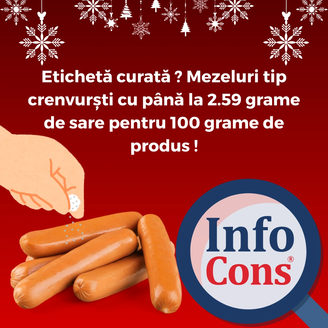 InfoCons Protecția Consumatorilor te informează : 14 zile până la Crăciun ! Atenție la Mezelurile de tip Crenvurști cu până la 10 aditivi alimentari / E-uri și 18.55 grame de proteine pentru 100 grame de produs !