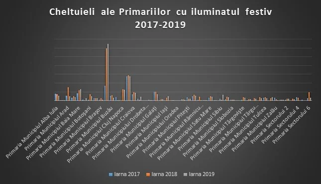InfoCons a realizat un studiu comparativ cu privire la cheltuielile Primăriilor din cadrul reședințelor de județ din România pentru iluminatul festiv din perioada sărbătorile de iarnă, respectiv iarna anului 2017 (decembrie 2017 – ianuarie 2018), iarna anului 2018 (decembrie 2018 – ianuarie 2019 ) si iarna anului 2019 (decembrie 2019 -ianuarie 2020.)