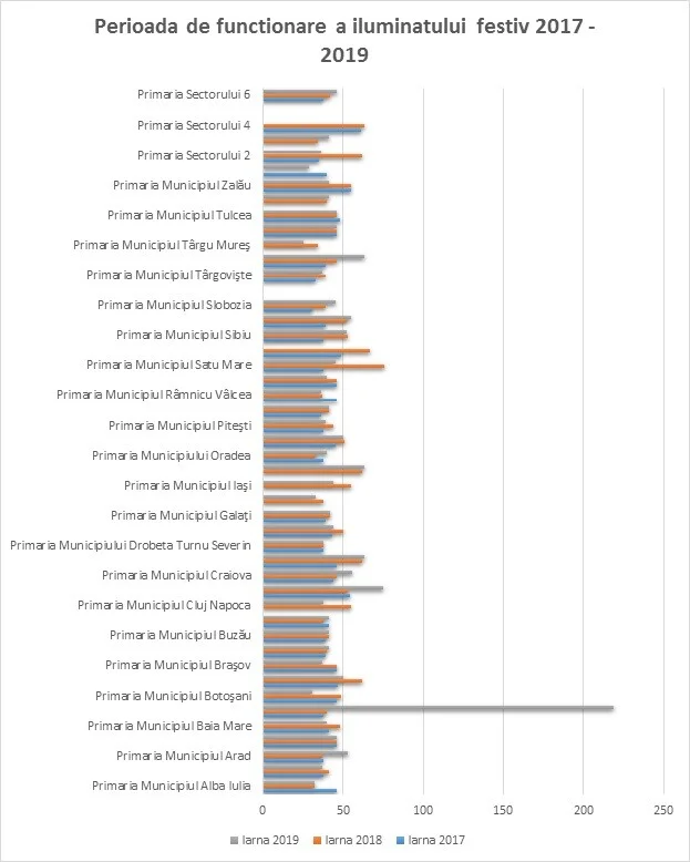 – 42,3 de zile a fost media de utilizare a instalațiilor pentru iluminatul festiv aferenta sarbatorilor din 2017;