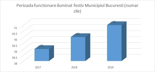 – 42,3 de zile a fost media de utilizare a instalațiilor pentru iluminatul festiv aferenta sarbatorilor din 2017;