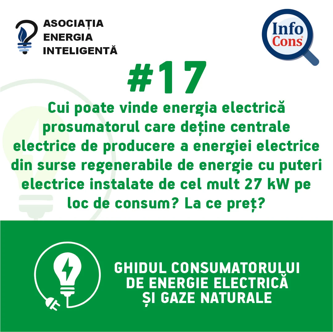 Prosumatorul care deține centrale electrice de producere a energiei electrice din surse regenerabile de energie cu puteri electrice instalate de cel mult 27 kW pe loc de consum și care nu beneficiază de sistemul de promovare prin certificate verzi poate vinde energia electrică produsă din acestea și livrată în rețeaua electrică furnizorului de energie electrică cu care acesta, în calitate de consumator final, are încheiat/încheie contract de furnizare a energiei electrice, la prețul prevăzut la art. 14 alin. (6^2) din Legea nr. 220/2008 pentru stabilirea sistemului de promovare a producerii energiei din surse regenerabile de energie, republicată, cu modificările și completările ulterioare.
