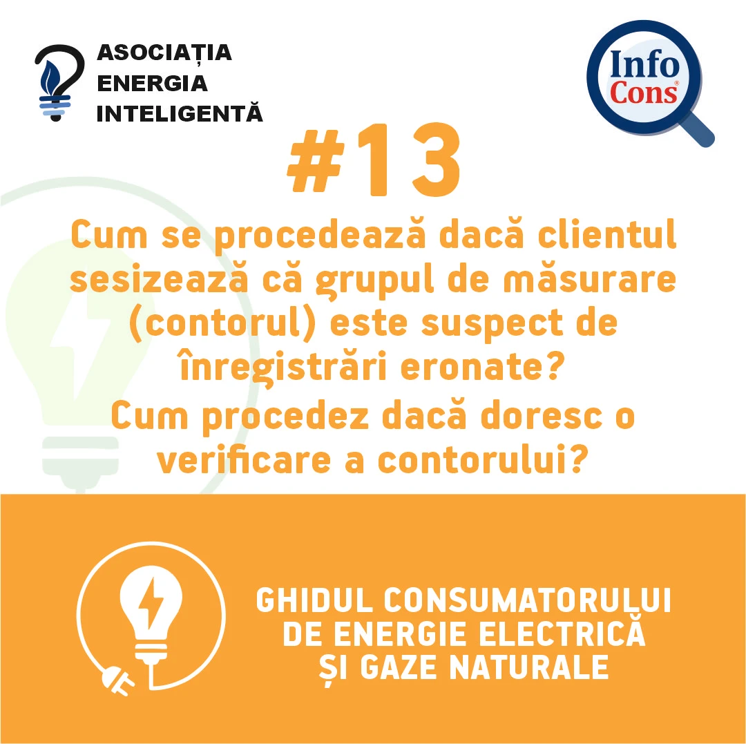 InfoCons protectia consumatorilor de energie electrica te informeaza – Cum se procedează dacă clientul sesizează că grupul de măsurare (contorul) este suspect de înregistrări eronate ?