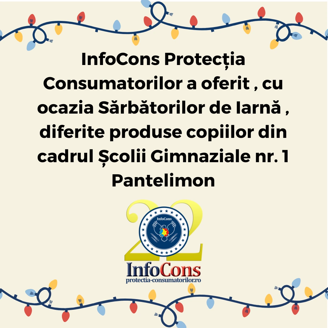 InfoCons Protecția Consumatorilor a oferit , cu ocazia Sărbătorilor de Iarnă , diferite produse copiilor din cadrul Școlii Gimnaziale nr. 1 Pantelimon