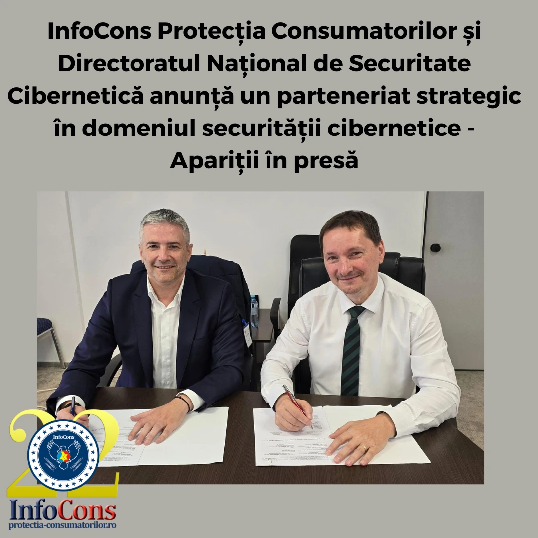 InfoCons Protecția Consumatorilor și Directoratul Național de Securitate Cibernetică anunță un parteneriat strategic în domeniul securității cibernetice – Apariții în presă