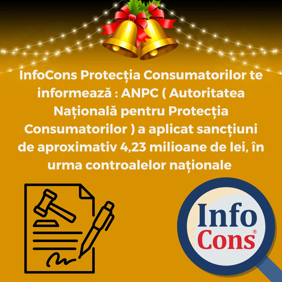 InfoCons Protecția Consumatorilor te informează : ANPC ( Autoritatea Națională pentru Protecția Consumatorilor ) a aplicat sancțiuni de aproximativ 4,23 milioane de lei, în urma controalelor naționale