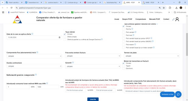 InfoCons protecția consumatorului de gaze naturale : Cum se folosește comparatorul de prețuri al ANRE ?