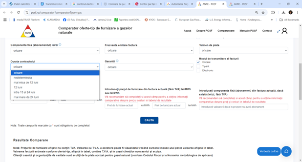 De asemenea, ni se cere să indicăm dacă ne dorim un preț fix, variabil, mixt, variabil după anumiți indecși bursieri.