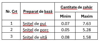 - Cantitatea de zahăr variază între 0.05 g și 7.63 g raportată la 100 g de produs :