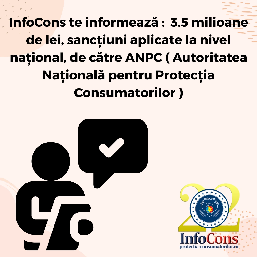 InfoCons te informează : 3.5 milioane de lei, sancțiuni aplicate la nivel național , de către ANPC ( Autoritatea Națională pentru Protecția Consumatorilor )