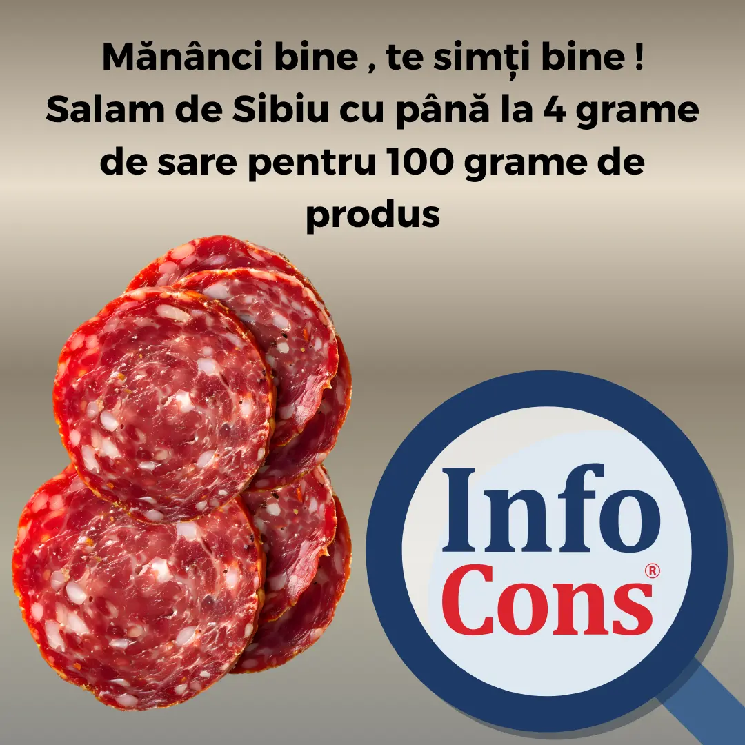 InfoCons protectia consumatorilor te informeaza cu privire la  produsele tip Salam de Sibiu – Click AICI pentru a vedea cantitatea de sare pentru produsele tip Salam de Sibiu ce au facut obiectul acestui studiu .