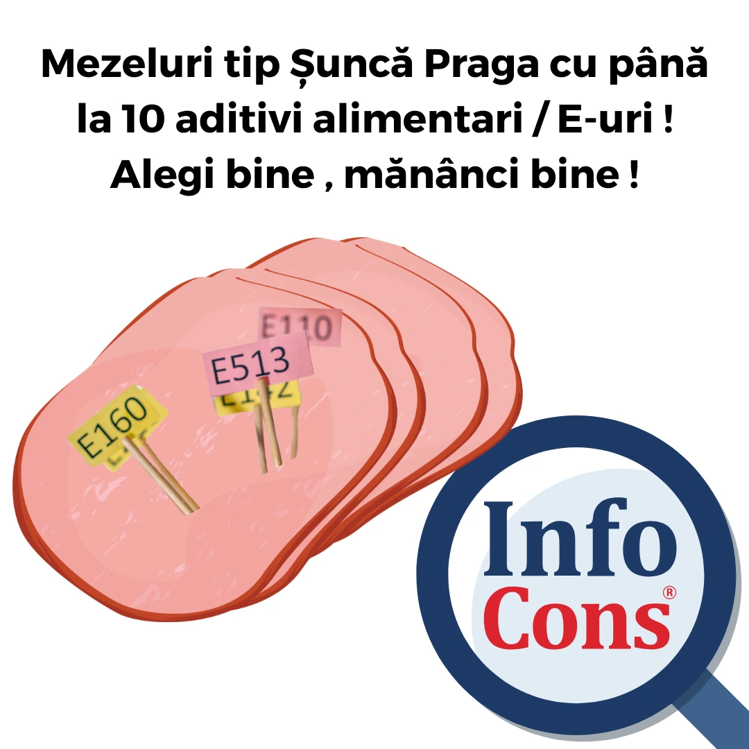 InfoCons Protecția Consumatorilor te informează : Mezeluri cu peste 123 ADITIVI alimentari / E-URI : Parizer 12 , Crenvurști 10 , Șuncă 10 , Salam 8 , Cârnați 6 , etc. Etichetă curată ?