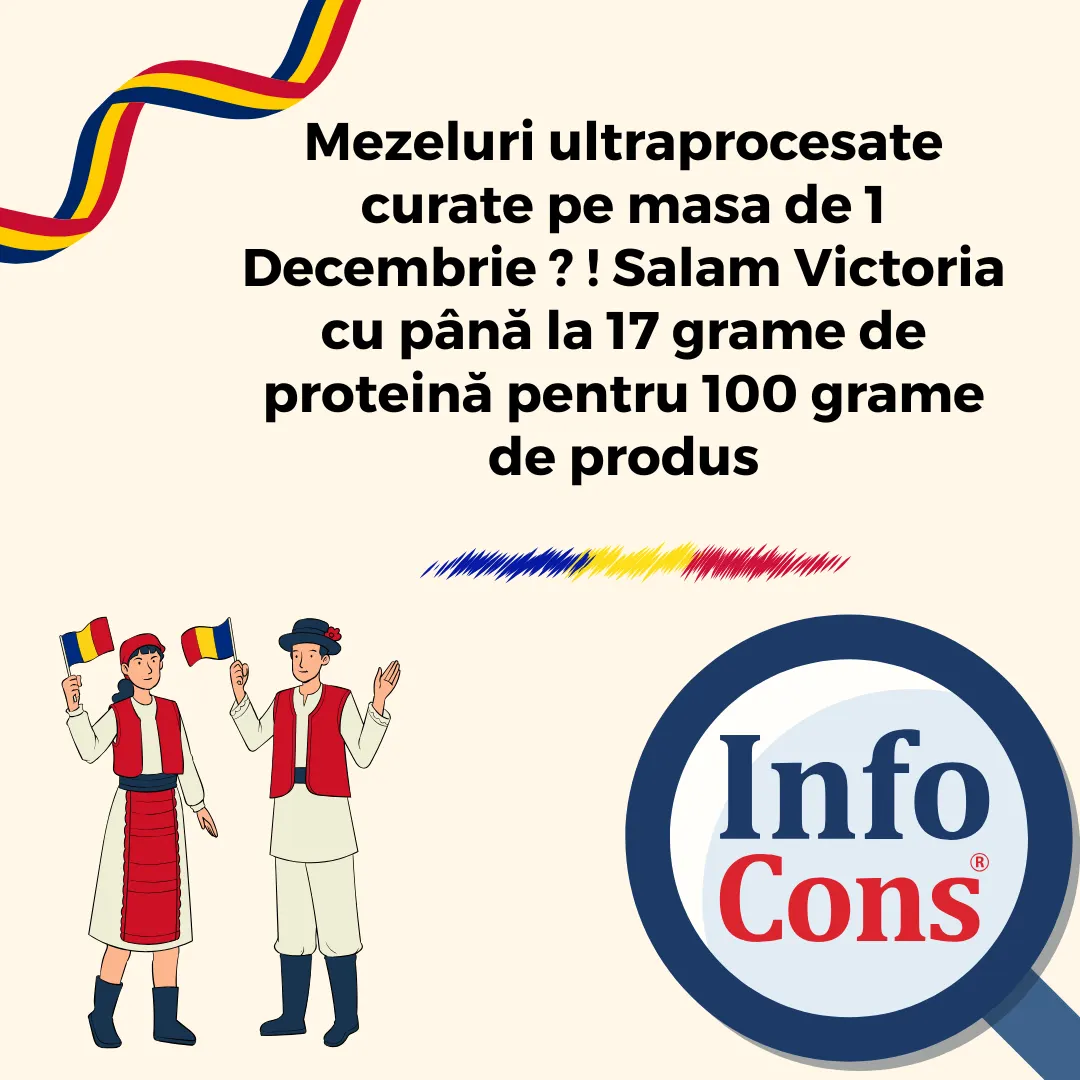 InfoCons Protecția Consumatorilor te informează : Unicul studiu privind mezelurile tip Salam Victoria cu până la 8 aditivi alimentari E-URI și 17 grame de proteină pentru 100 grame de produs !