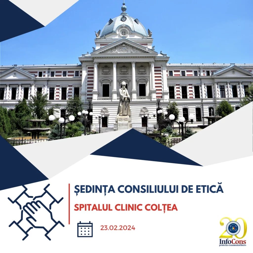 Reprezentantul InfoCons participă la ședința Consiliului Etic al Spitalului Clinic ColțeaAdăugat la: 2024-02-23