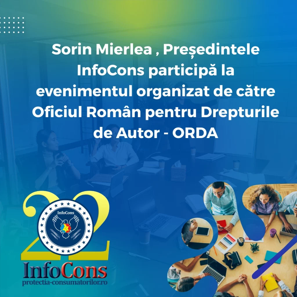 Sorin Mierlea , Președintele InfoCons participă in calitate de speaker la seminarul organizat de către Comisia Europeana si Oficiul Român pentru Drepturile de Autor – ORDA pe tema proprietatii intelectuale in educatieAdăugat la: 2025-09-23