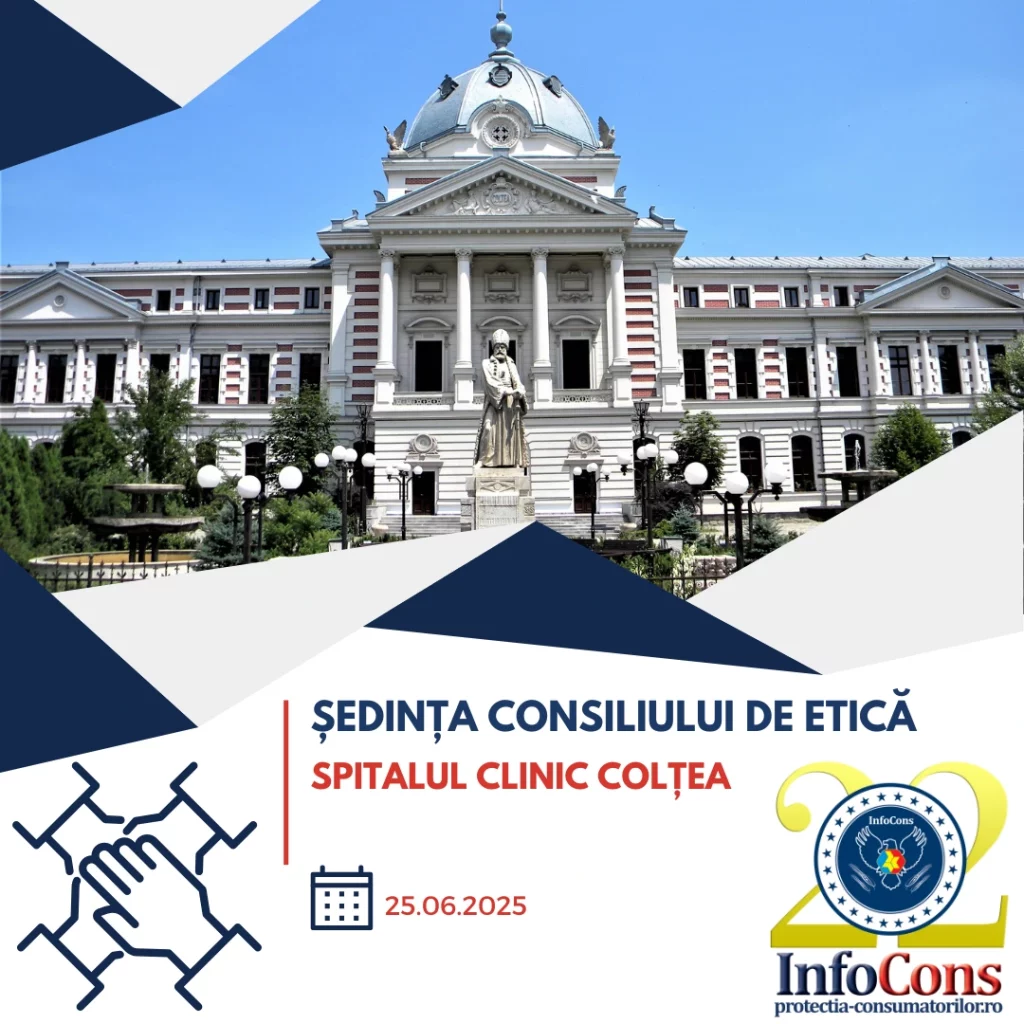Reprezentantul InfoCons participă la ședința Consiliului de Etică al Spitalului Clinic ColțeaAdăugat la: 2025-06-25