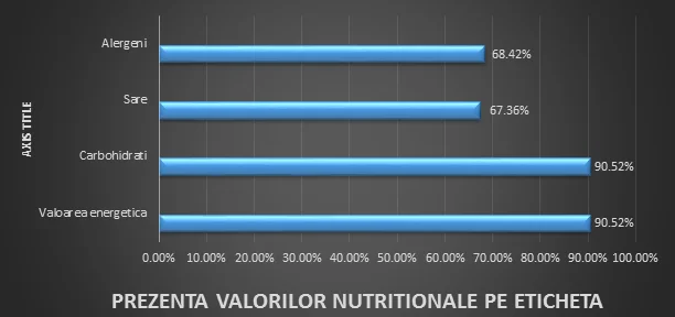 90.52 % din produsele analizate au mentionata pe eticheta valoarea energetica cuprinsa intre 115 – 378 kcal per 100 gr.