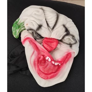 Descrierea produsului : Mască de Halloween cu piele albă, gură și nas roșu și păr verde.