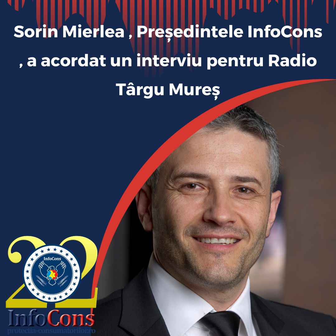 Sorin Mierlea , Președintele InfoCons Protecția Consumatorilor , a acordat un interviu telefonic pentru Radio România Târgu Mureș , unde a oferit sfaturi utile privind achiziția produselor specifice sărbătorilor pascale și alegerea cadourilor de Paște, precum și informații despre Aplicatia de Protectia Consumatorilor InfoCons.