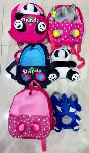 Descrierea produsului : Rucsac cu o jucărie moale (panda sau elefant) care are labele inserate în două găuri în buzunarul din față. Jucăria moale poate fi scoasă din rucsac.