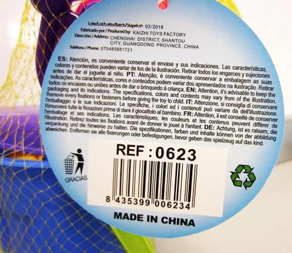 – Un copil mic îi poate plasa în gură și se poate sufoca. Produsul nu îndeplinește cerințele Directivei privind siguranța jucăriilor și ale standardului european relevant EN 71-1.