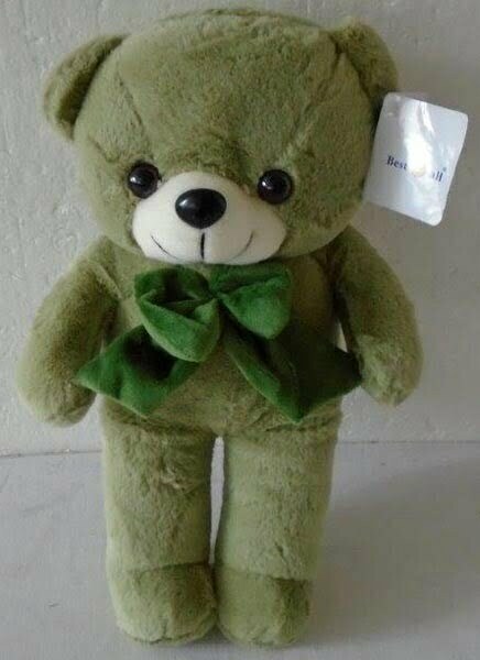 Descriere: Ursuleț de pluș de pluș verde deschis cu o prova. Jucăria este vândută fără ambalaj.