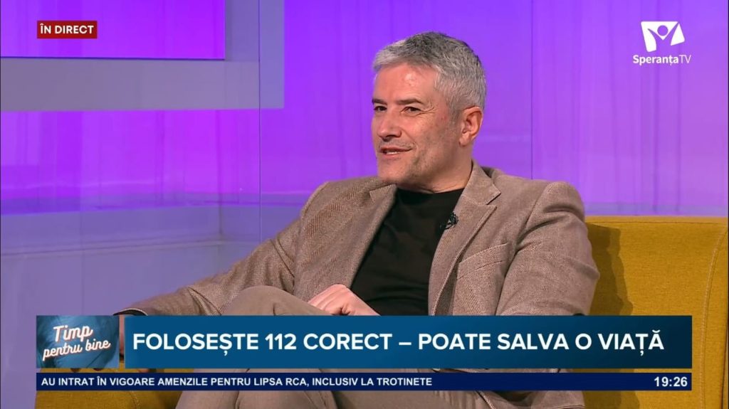 Sorin Mierlea , Președintele InfoCons Protecția Consumatorilor în direct la Speranța TV , în platoul emisiunii ” Timp pentru bine ” discutând despre protocolul încheiat cu STS referitor la împiedicarea folosirii abuzive a numărului de urgență 112.