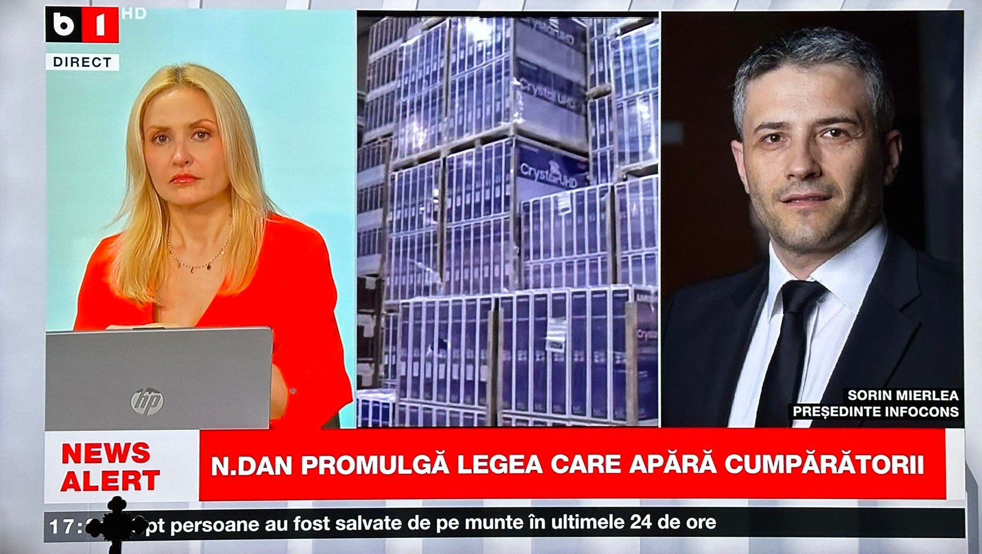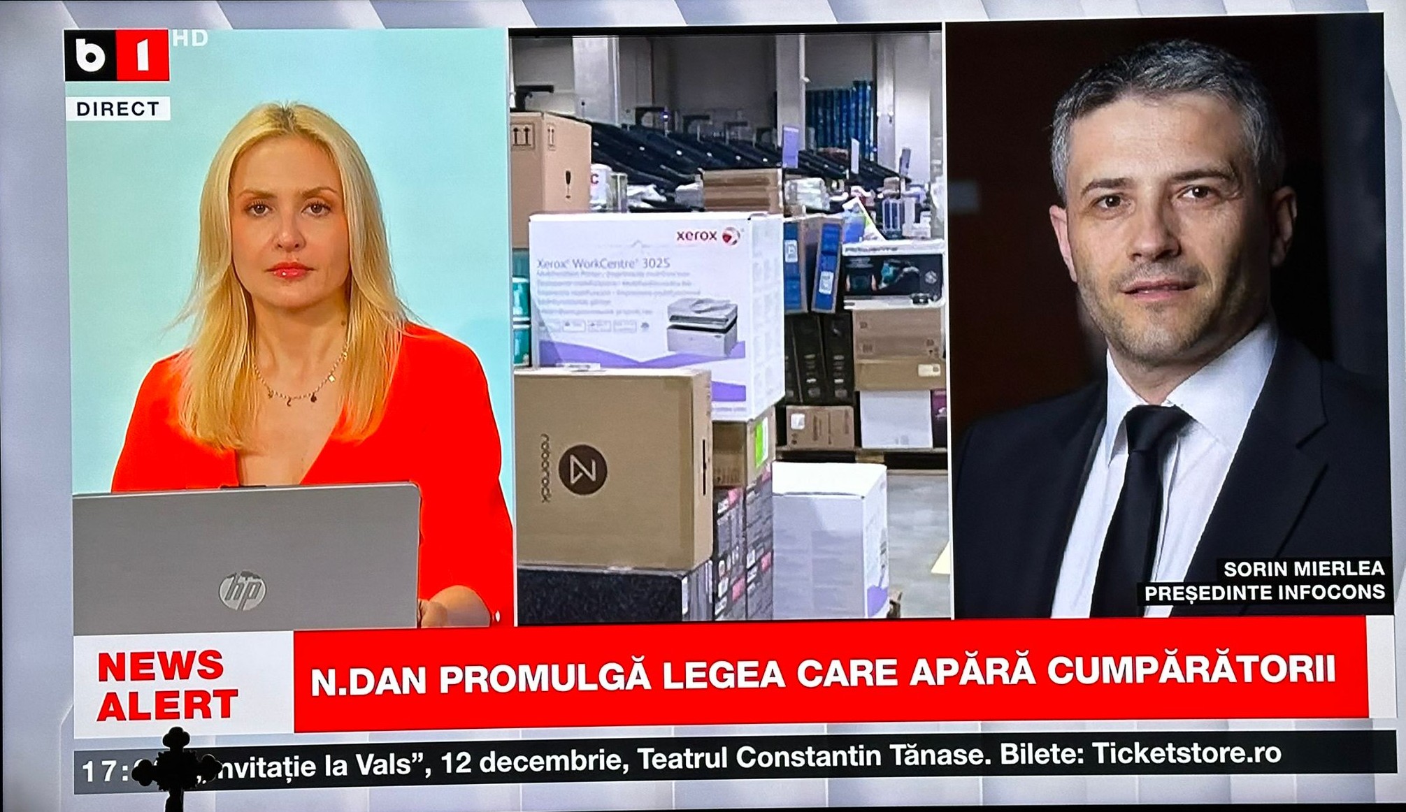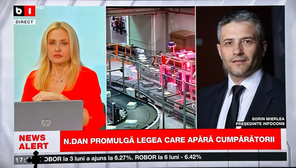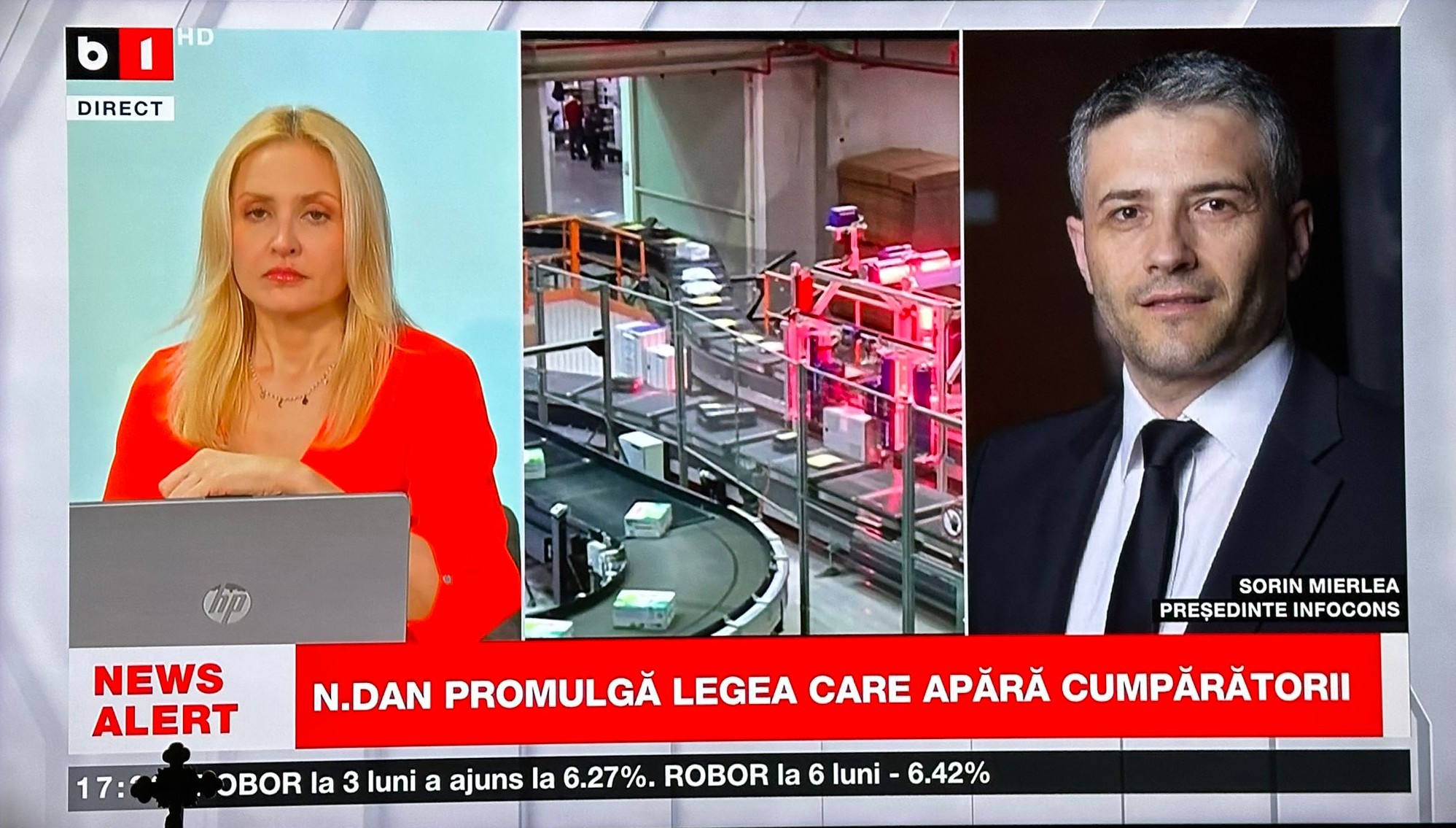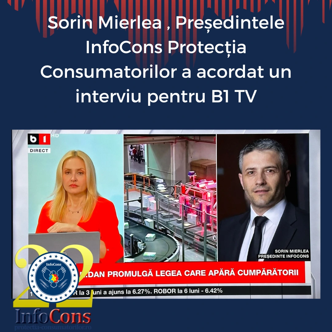 Sorin Mierlea , Președintele InfoCons Protecția Consumatorilor , a acordat un interviu pentru B1 TV despre noua lege privind operatorii economici