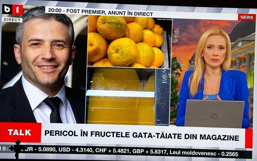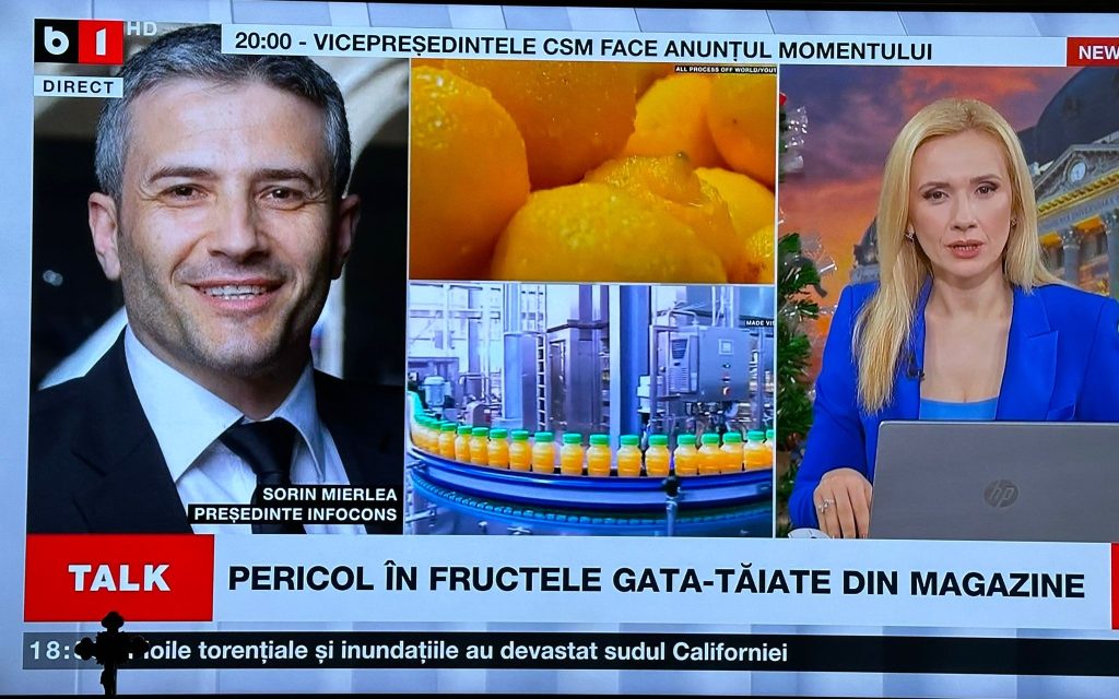 Sorin Mierlea , Președintele InfoCons Protecția Consumatorilor , a acordat un interviu pentru B1 TV despre pericolul din fructele gata tăiate