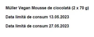 Compania Alois Müller GmbH & Co.KG efectueaza rechemarea produsului 4025500275211 – Müller Vegan Mousse Desert de spumă de ciocolată pe bază de crema de nuci de cocos (2 x 70 g) ca masura de precautie pentru protectia consumatorilor, mentionat mai jos.