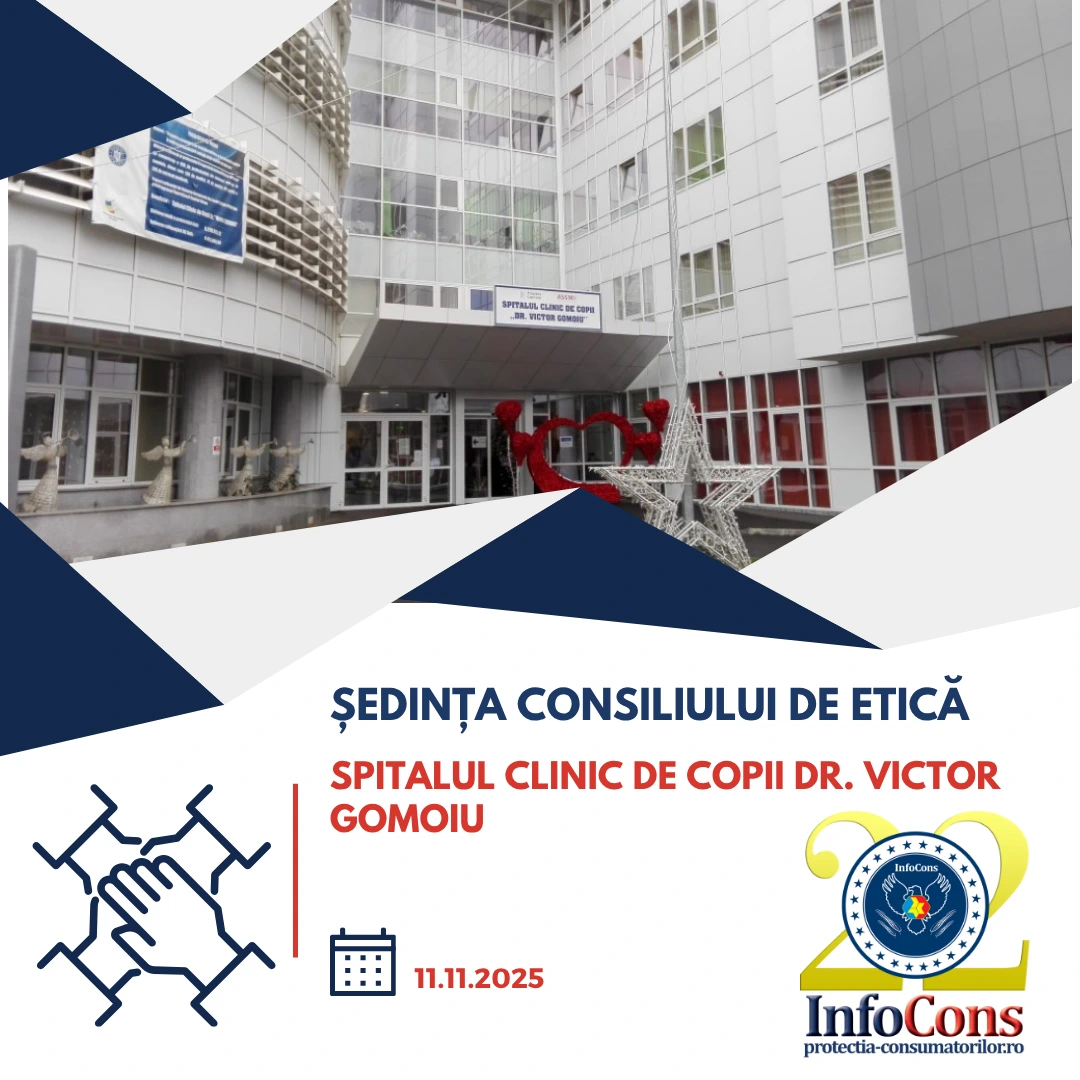 Reprezentantul InfoCons participă astăzi , 11 Noiembrie 2025 , începând cu ora 12:30 , la ședința Consiliului de Etică din cadrul Spitalului Clinic de Copii Dr. Victor Gomoiu .