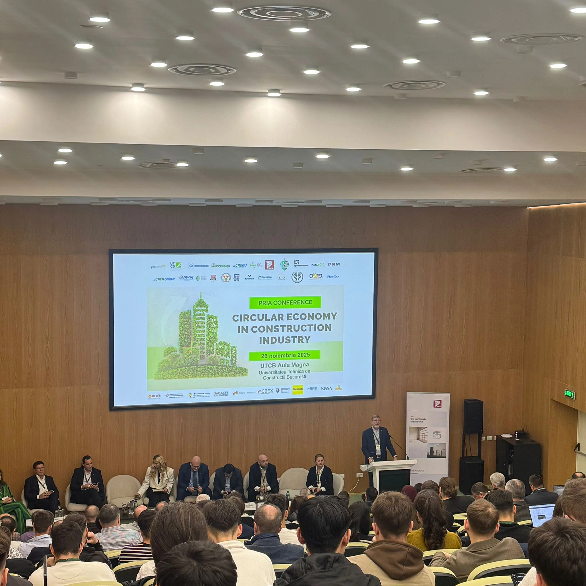 Reprezentantul InfoCons participă astăzi, 26 noiembrie 2025, la conferința PRIA Circular Economy and Construction in Romania, un eveniment dedicat economiei circulare în construcții din România. Conferința este organizată în la Universitatea Tehnică de Construcții București.