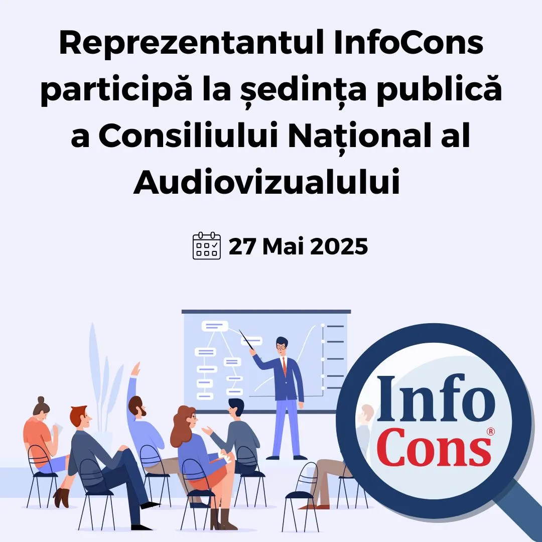 Reprezentantul InfoCons participă astăzi, 27 mai 2025 , începând cu orele 10:00 , la ședința ședința publică a Consiliului Național al Audiovizualului .