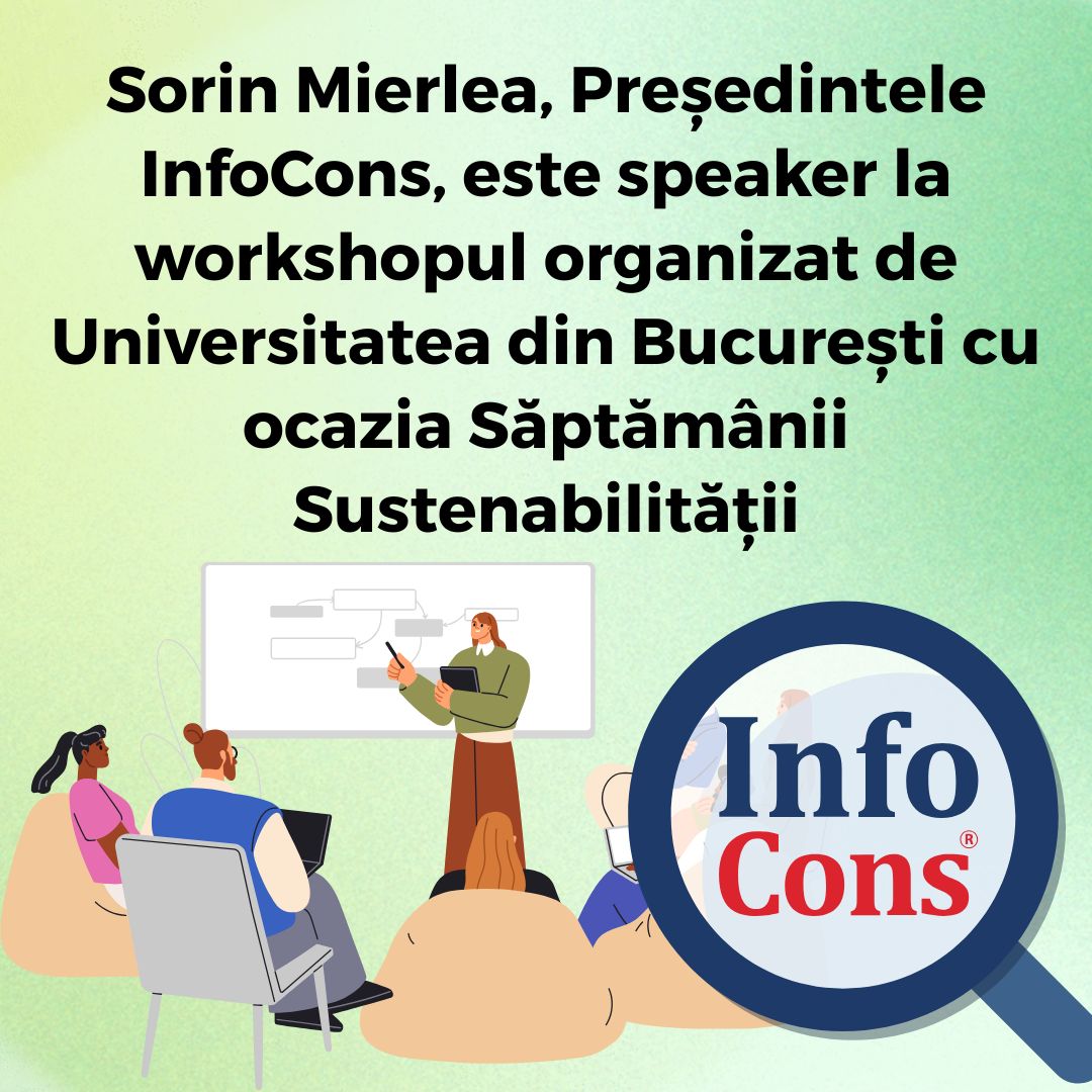 Astăzi, 28 octombrie 2025, Sorin Mierlea , Președintele InfoCons , este speaker la workshopul organizat de Universitatea din București cu ocaziaSăptămânii Sustenabilității. Workshopul are ca temă „Sustenabilitatea și protecția consumatorului – mijloace concrete pentru o societate echitabilă”.