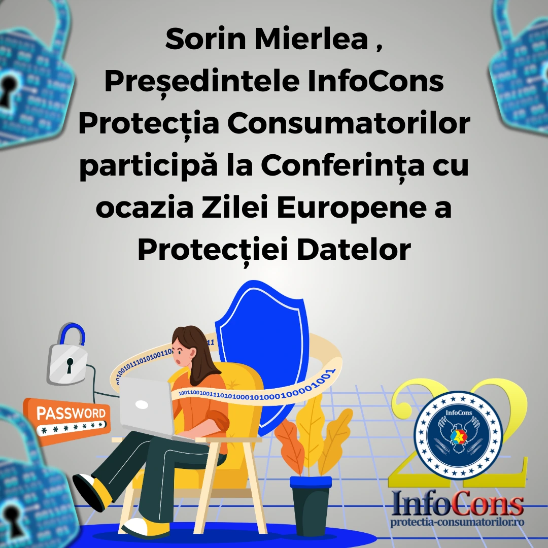 Cu ocazia celebrării Zilei Europene a Protecției Datelor , Sorin Mierlea , Președintele InfoCons participă la Conferința intitulată ” Particularitățile investigaților pentru tratarea plângerilor – actualitate și perspectiva Noului Regulament referitor la soluţionarea plângerilor cu impact transfrontalier.