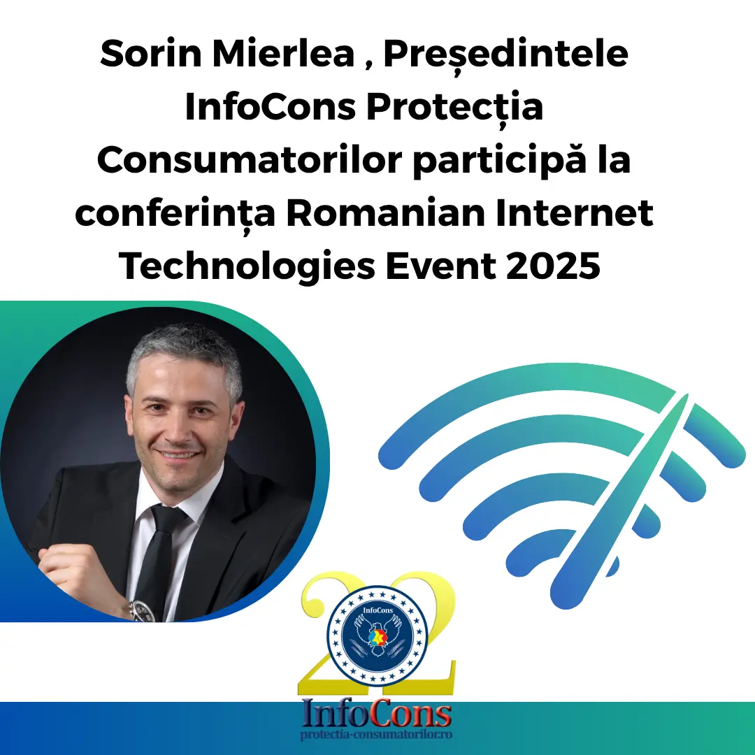 Sorin Mierlea , Președintele InfoCons Protecția Consumatorilor participă la conferința Romanian Internet Technologies Event 2025 , tematica conferinței – ” Evoluții ale Internetului determinate de descentralizare, securitate și conținutul  traficului ” – în cadrul special conceput pentru a facilita dialogul în industrie – între furnizori , dezvoltatori și utilizatori , mereu conectați la noi oportunități.