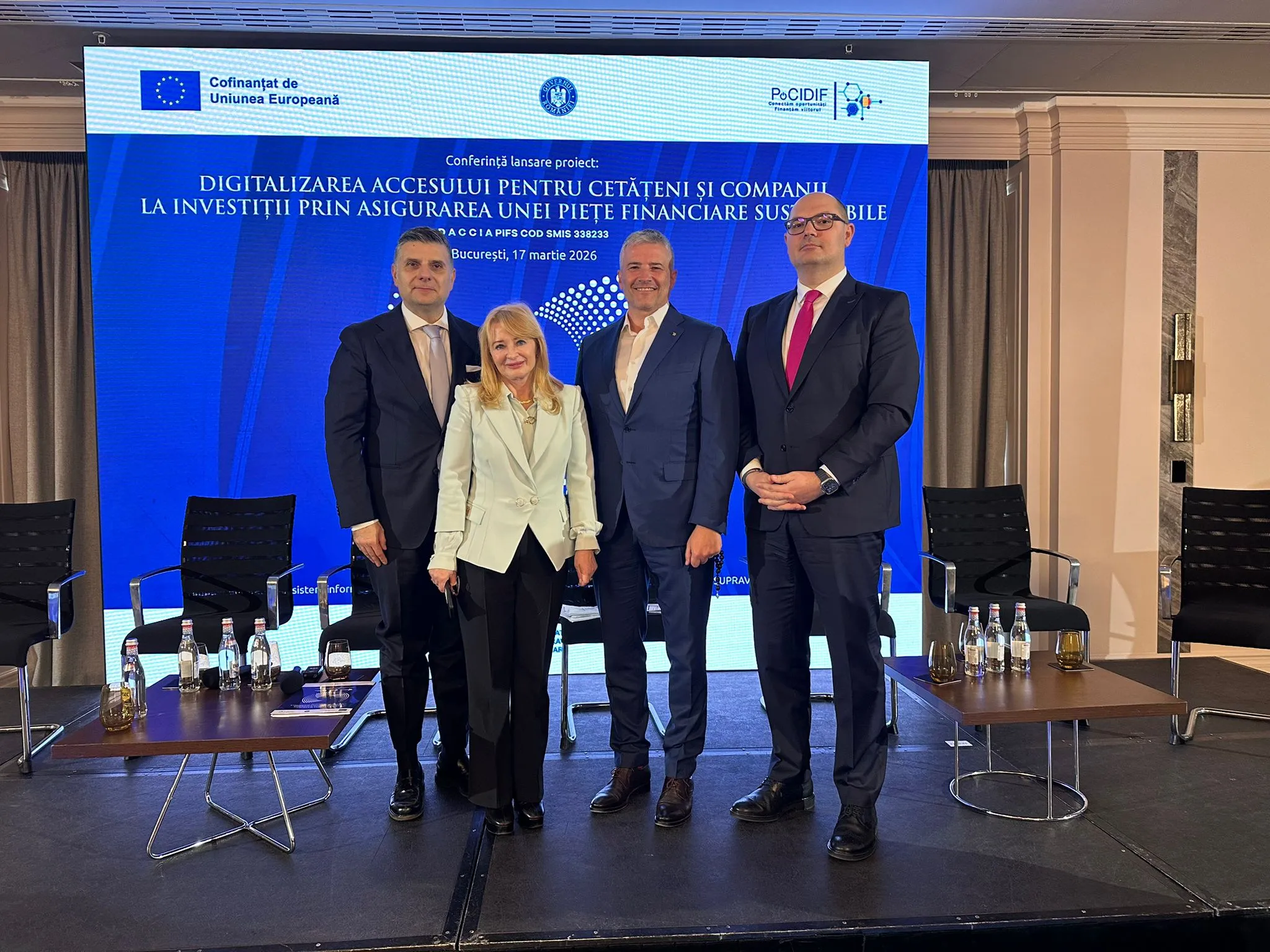 Sorin Mierlea , Președintele InfoCons , participă în calitate de speaker la Conferința organizată de Autoritatea de Supraveghere Financiară pentru a lansa proiectul : Digitalizarea Accesului pentru Cetățeni și Companii la Investiții prin Asigurarea unei Piețe Financiare Sustenabile . Evenimentul are loc astăzi, 17 martie 2026, la Hotel JW Marriott, București.