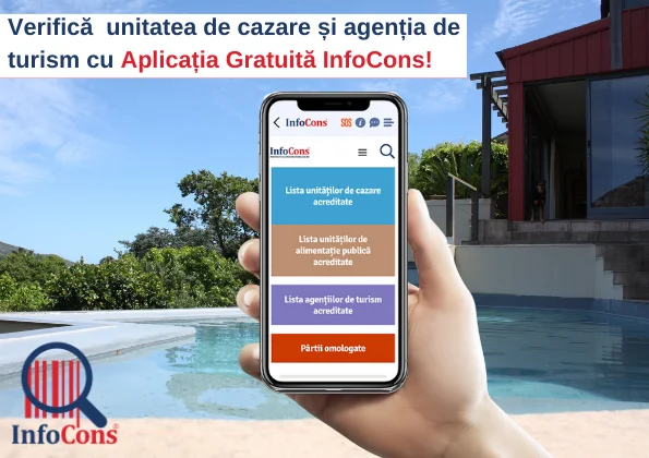 Cu ajutorul Aplicației Gratuite InfoCons poți verifica lista unităților de cazare acreditate, lista agențiilor de turism acreditate, dar și lista pârtiilor omologate.