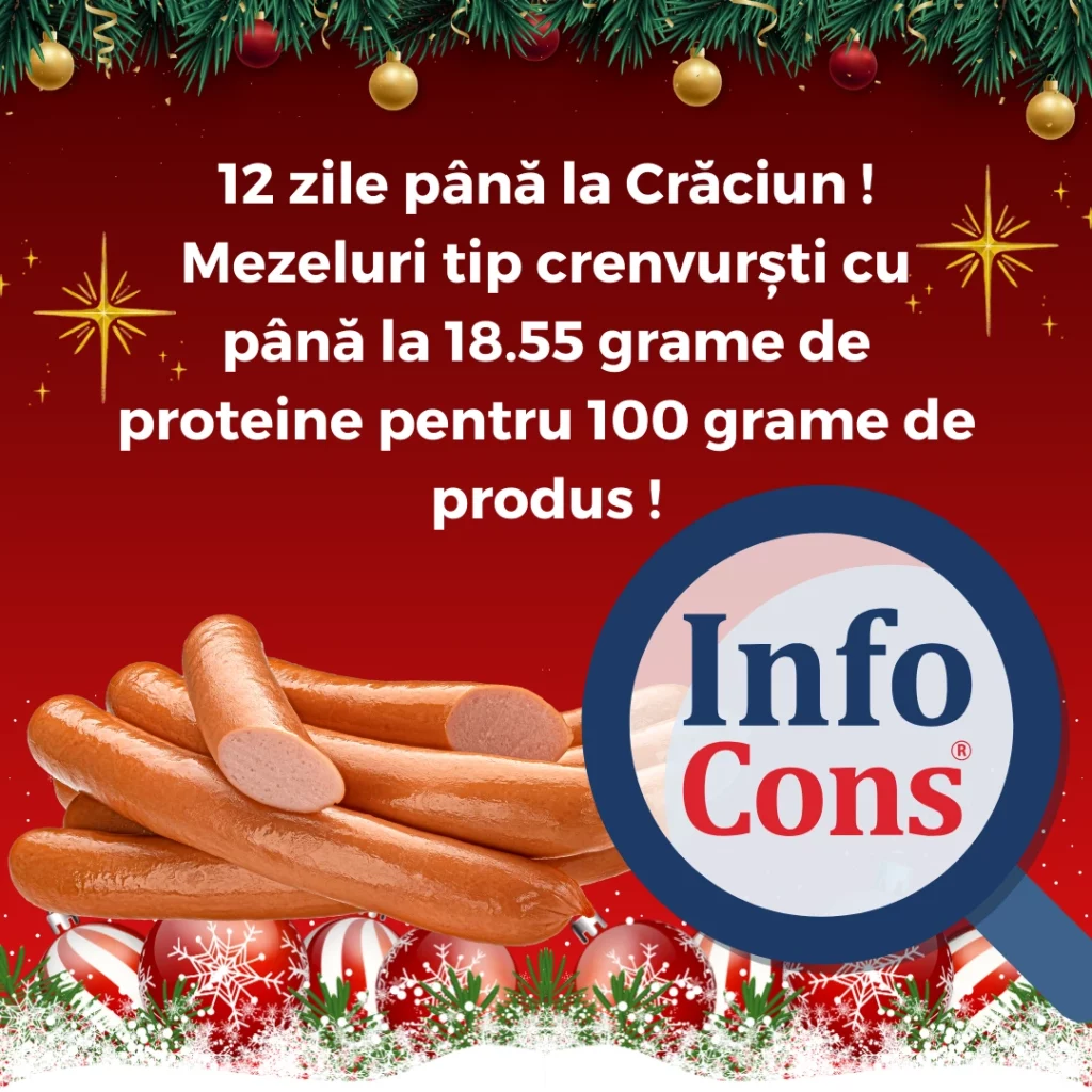 12 zile până la Crăciun ! Mezeluri tip crenvurști cu până la 18.55 grame de proteine pentru 100 grame de produs !Adăugat la: 2025-12-13