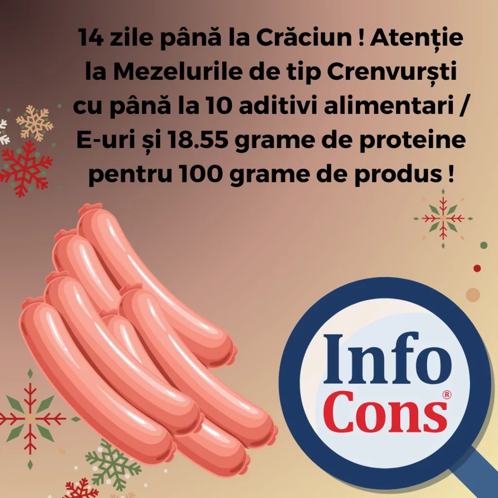 14 zile până la Crăciun ! Atenție la Mezelurile de tip Crenvurști cu până la 10 aditivi alimentari / E-uri și 18.55 grame de proteine pentru 100 grame de produs !Adăugat la: 2025-12-12