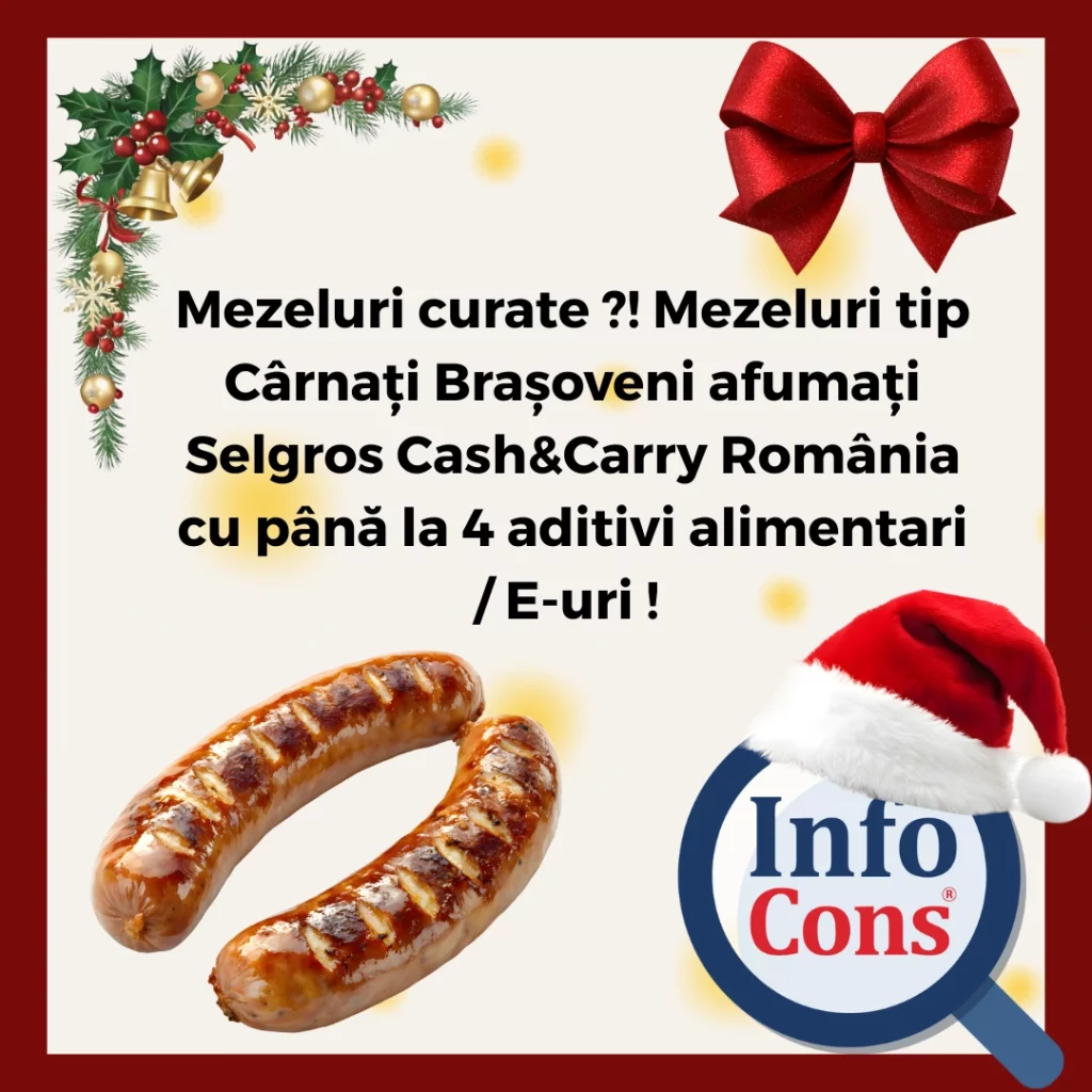 Mezeluri curate ?! Mezeluri tip Cârnați Brașoveni afumați Selgros Cash&Carry România cu până la 4 aditivi alimentari / E-uri ! Adăugat la: 2025-12-28