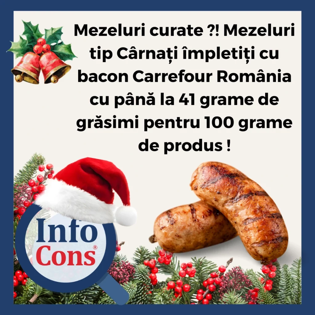 Mezeluri curate ?! Mezeluri tip Cârnați împletiți cu bacon Carrefour România cu până la 41 grame de grăsimi pentru 100 grame de produs !Adăugat la: 2025-12-21