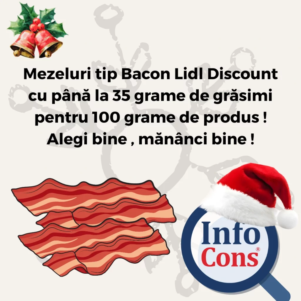Mezeluri tip Bacon Lidl Discount cu până la 35 grame de grăsimi pentru 100 grame de produs ! Alegi bine , mănânci bine !Adăugat la: 2025-12-29