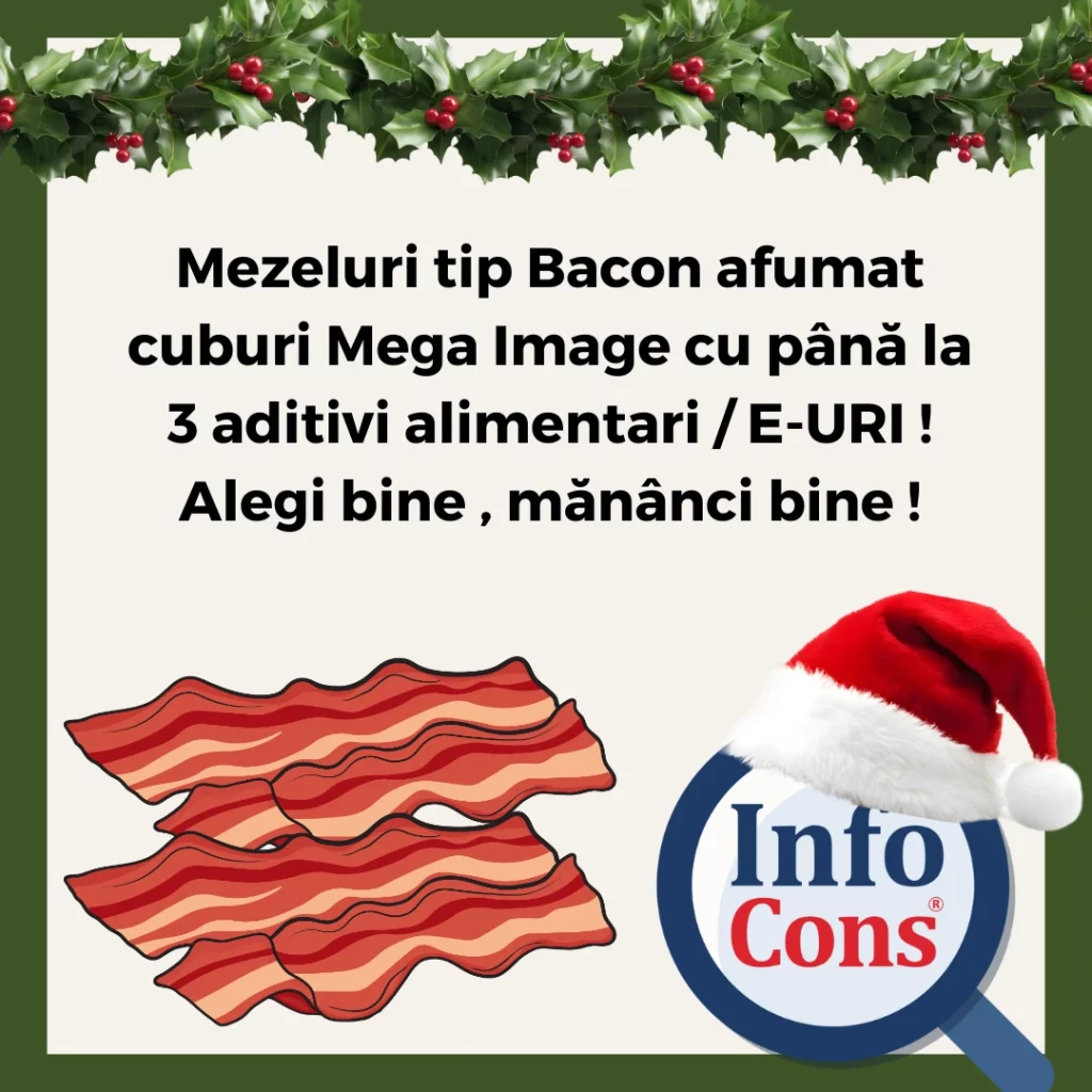 Mezeluri tip Bacon afumat cuburi Mega Image cu până la 3 aditivi alimentari / E-URI ! Alegi bine , mănânci bine !Adăugat la: 2025-12-23