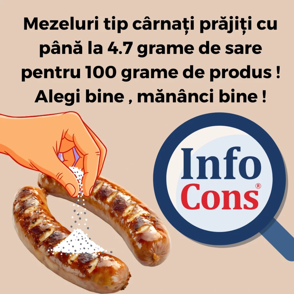 Mezeluri tip cârnați prăjiți cu până la 4.7 grame de sare pentru 100 grame de produs ! Alegi bine , mănânci bine !Adăugat la: 2025-12-06