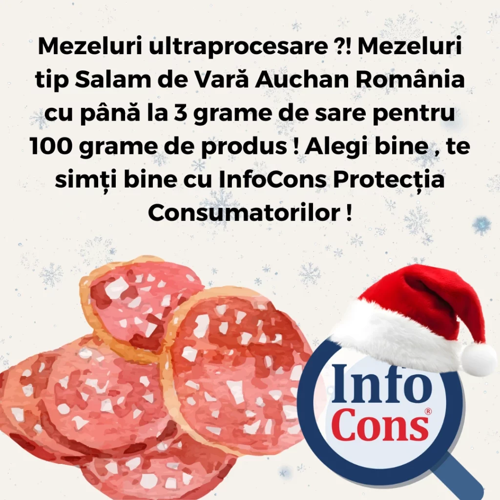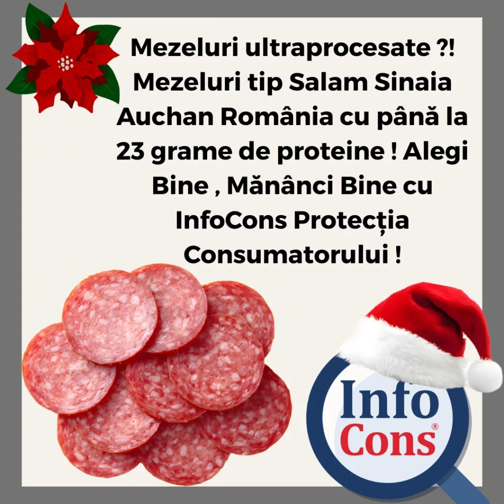 Mezeluri ultraprocesate ?! Mezeluri tip Salam Sinaia Auchan România cu până la 23 grame de proteine ! Alegi Bine , Mănânci Bine cu InfoCons Protecția Consumatorului !Adăugat la: 2025-12-28
