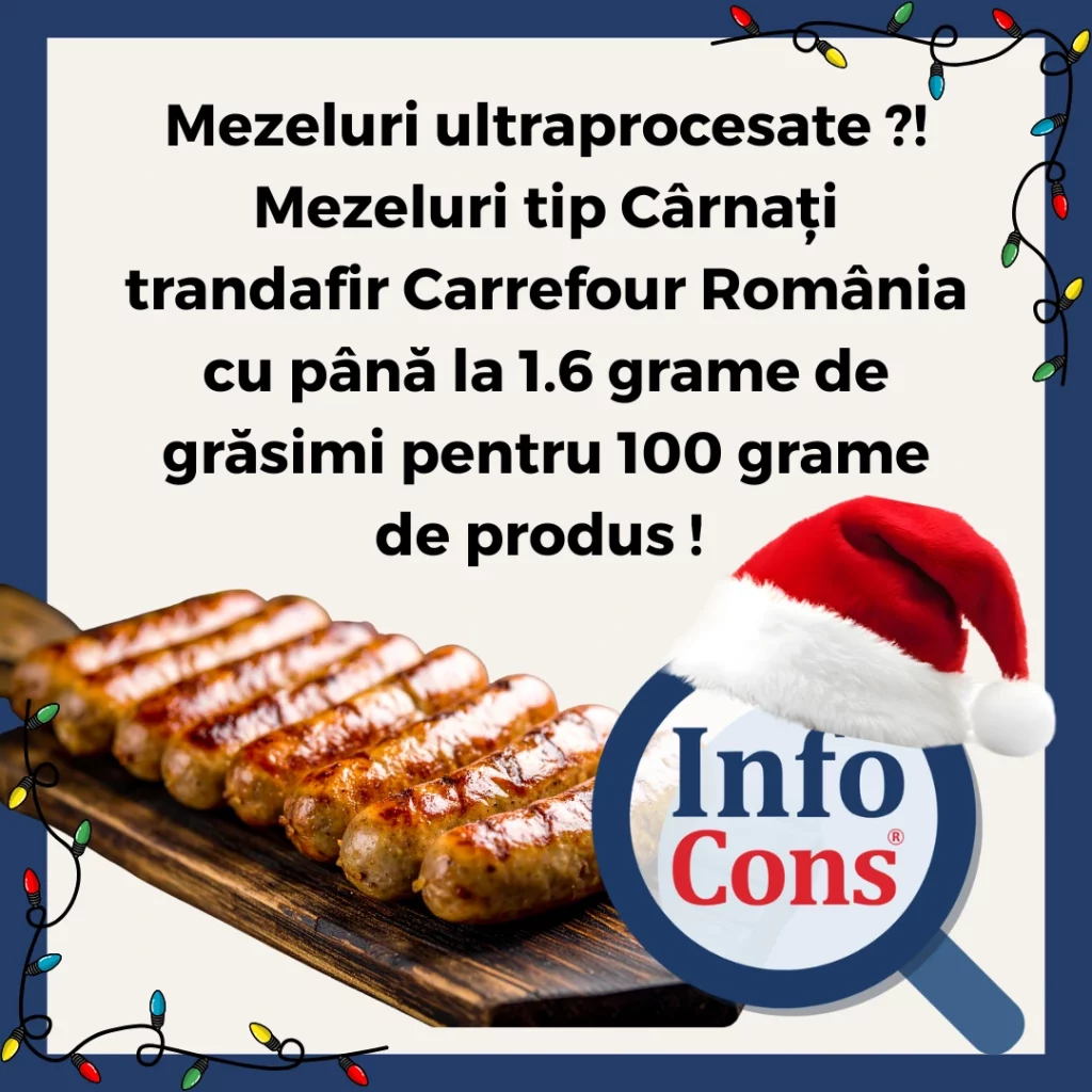 Mezeluri ultraprocesate ?! Mezeluri tip Cârnați trandafir Carrefour România cu până la 1.6 grame de grăsimi pentru 100 grame de produs ! Adăugat la: 2025-12-27