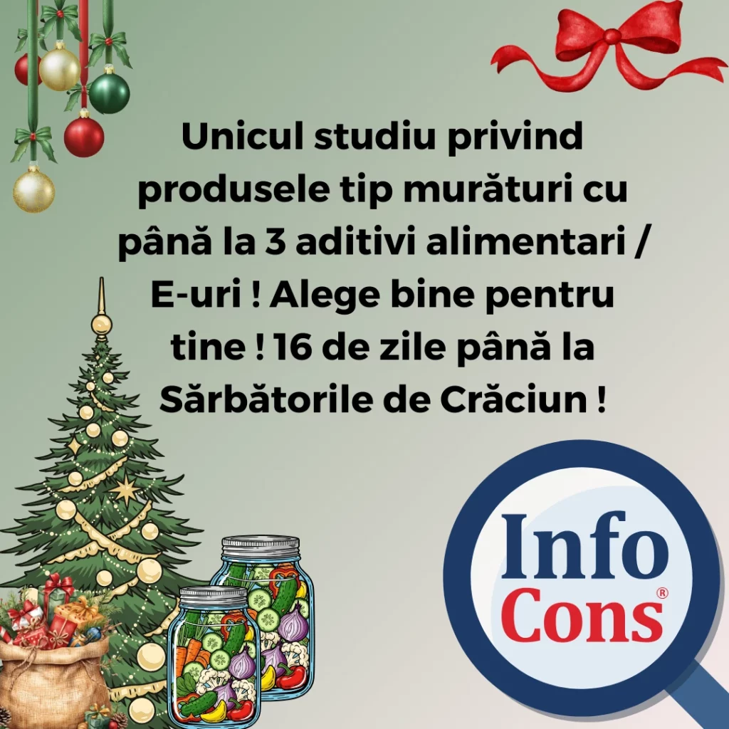 Unicul studiu privind produsele tip murături cu până la 3 aditivi alimentari / E-uri ! Alege bine pentru tine ! 16 de zile până la Sărbătorile de Crăciun !Adăugat la: 2025-12-09